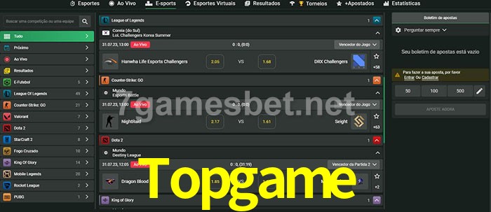 O Topgame oferece uma grande seleção de opções de apostas em e-sports com probabilidades competitivas